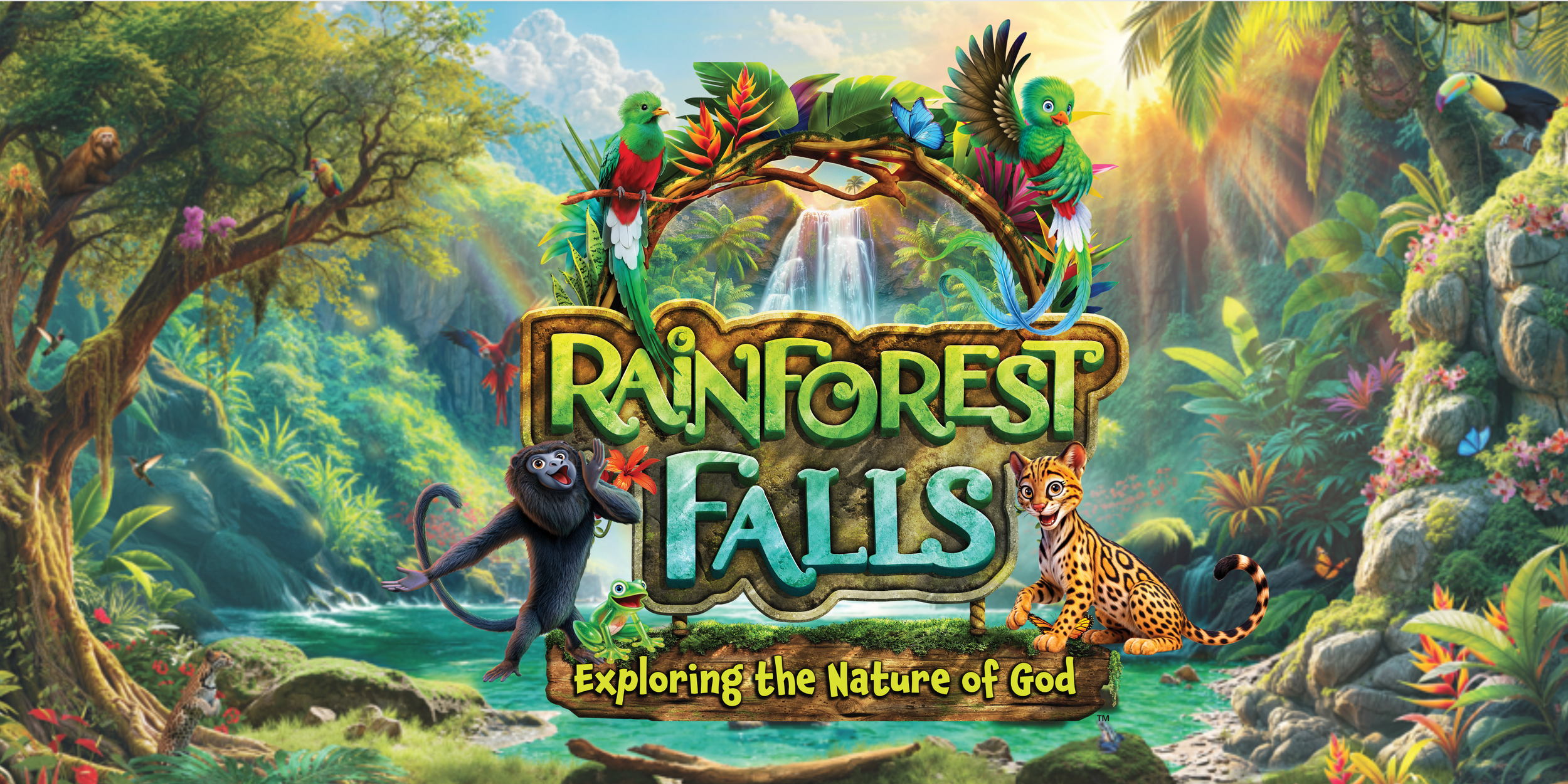 Step through the mist into Rainforest Falls, overflowing with wild waterfalls, towering trees, and colorful creatures. Beneath a canopy of chattering birds and howling monkeys, kids will plunge into a lifelong adventure of discovering the nature of God. During 5 mornings of wild games, rooted bible adventures, imagination station, sticky scripture, rainforest skits, music, and more, kids will explore what it means to be rooted in relationship with God, their creator, a safe place in life’s storms. This fun-filled week will have kids exploring the nature of God.